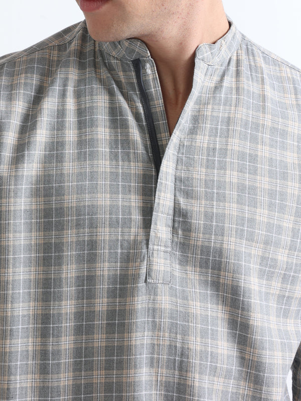 With our Men's Twill Melange Bottom Pocket Drawcord Stylish Shirt in Grey, you can achieve easy style. This shirt, which combines comfort and style, has a distinctive drawcord accent and bottom pocket for a contemporary touch. Made from high-quality twill melange fabric, it provides the ideal ratio of refined style to laid-back appeal. Perfect for effortlessly updating your regular outfit. Elevate with our Grey Melange Bottom Pocket Full Sleeve Checked Shirt. Featuring handpicked, top-quality regular fit, casual checked shirt. Shop Now!